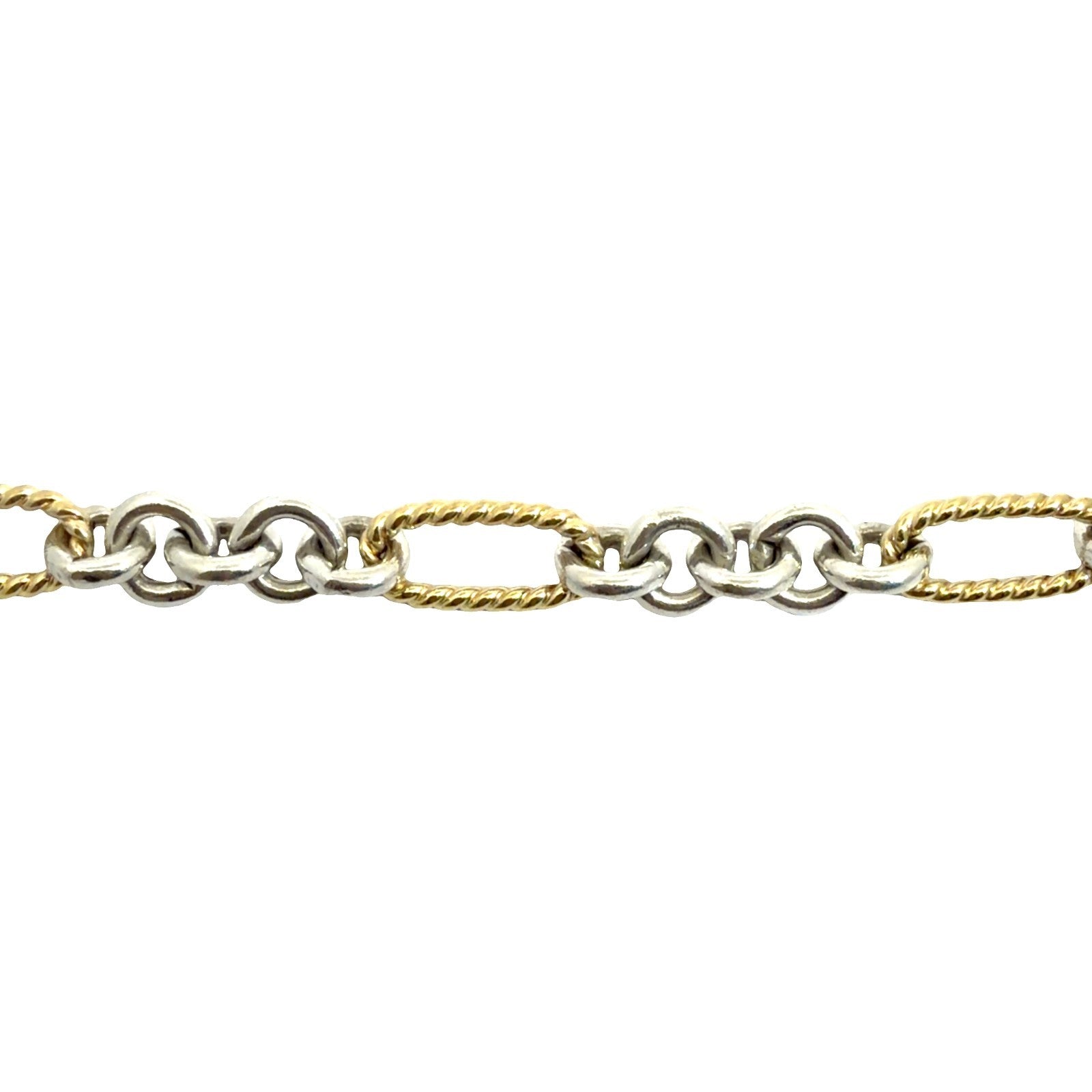 A timeless David Yurman piece featuring sterling silver and 18k yellow gold in an elegant two-tone finish. The distinctive Figaro link design pairs beautifully with a practical toggle closure. At 17 inches, this versatile necklace transitions seamlessly from everyday wear to special occasions.