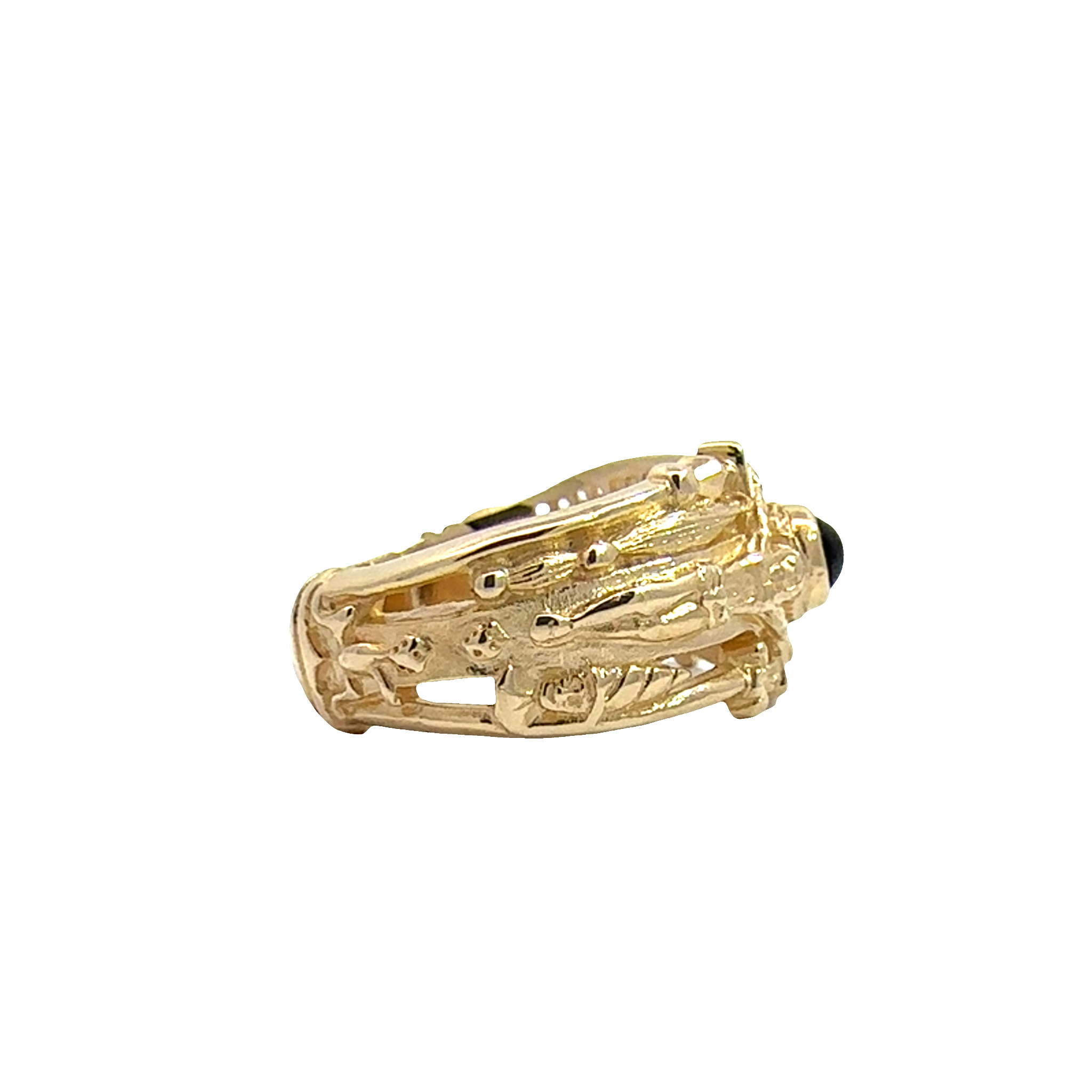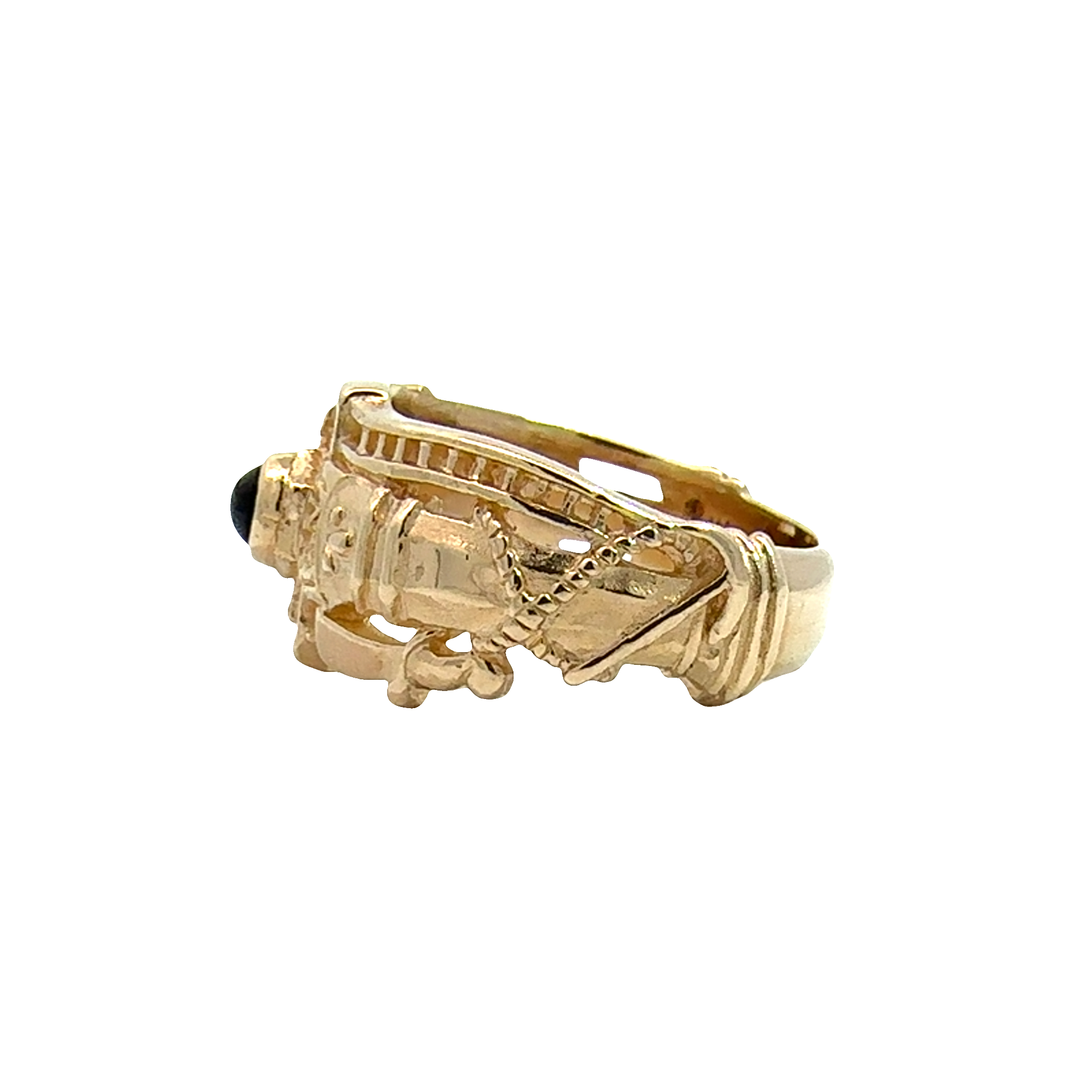Crafted in 14k yellow gold by James Avery, this Luther Ring features a deep cabochon garnet at its center—a rich stone long associated with love and devotion. The design draws inspiration from the original wedding rings exchanged between Martin Luther and his wife, Katharina von Bora, in the 16th century. Their marriage was both a partnership of faith and a love story that stood against the conventions of their time. With its timeless gold setting and symbolic garnet, this ring carries forward a tradition of enduring commitment and meaningful connection. A beautiful piece to wear as a statement of love, faith, or personal heritage.