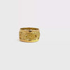 Enjoy the charm of this 18k yellow gold band, playfully designed with lovely rose patterns entwined with dainty leaves. Its radiant glow and intricate details bring a fresh twist to classic elegance, making it a delightful piece to brighten up any jewelry stash.