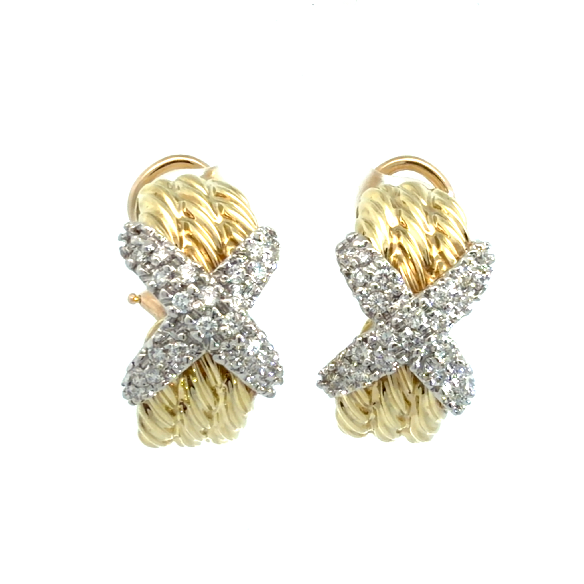 Elevate your elegance with these David Yurman 14k Yellow Gold Diamond Crossover Earrings. Featuring the distinctive warm yellow cable design, they blend timeless craftsmanship with sparkling diamond accents. These earrings add a sophisticated shimmer to any outfit, making them perfect for both everyday luxury and special occasions. Indulge in a piece that effortlessly captures grace and style.