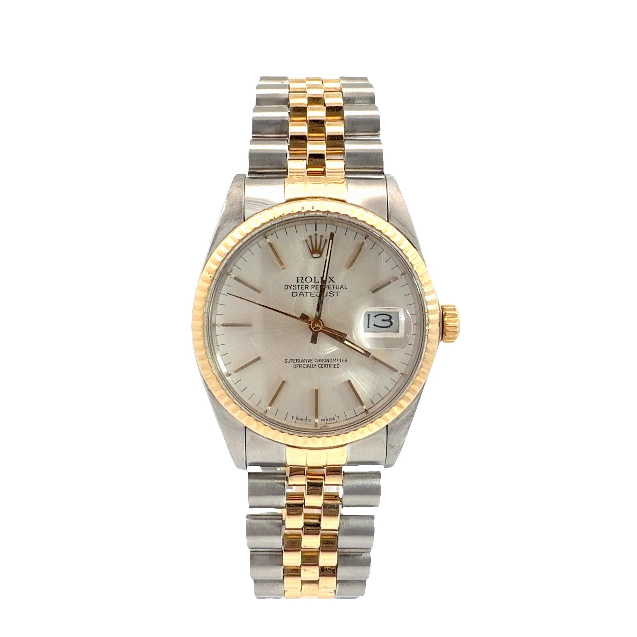 This Rolex Datejust 16013 captures the quintessential two-tone aesthetic that defined the brand throughout the 1980s. featuring an automatic movement and Rolex's signature blend of stainless steel and 18k yellow gold, this classic model delivers reliability, elegance, and unmistakable vintage charm. It's 36mm Oyster case and 20mm lug width provide a timeless and versatile fit, complemented by a two-tone Jubilee bracelet.