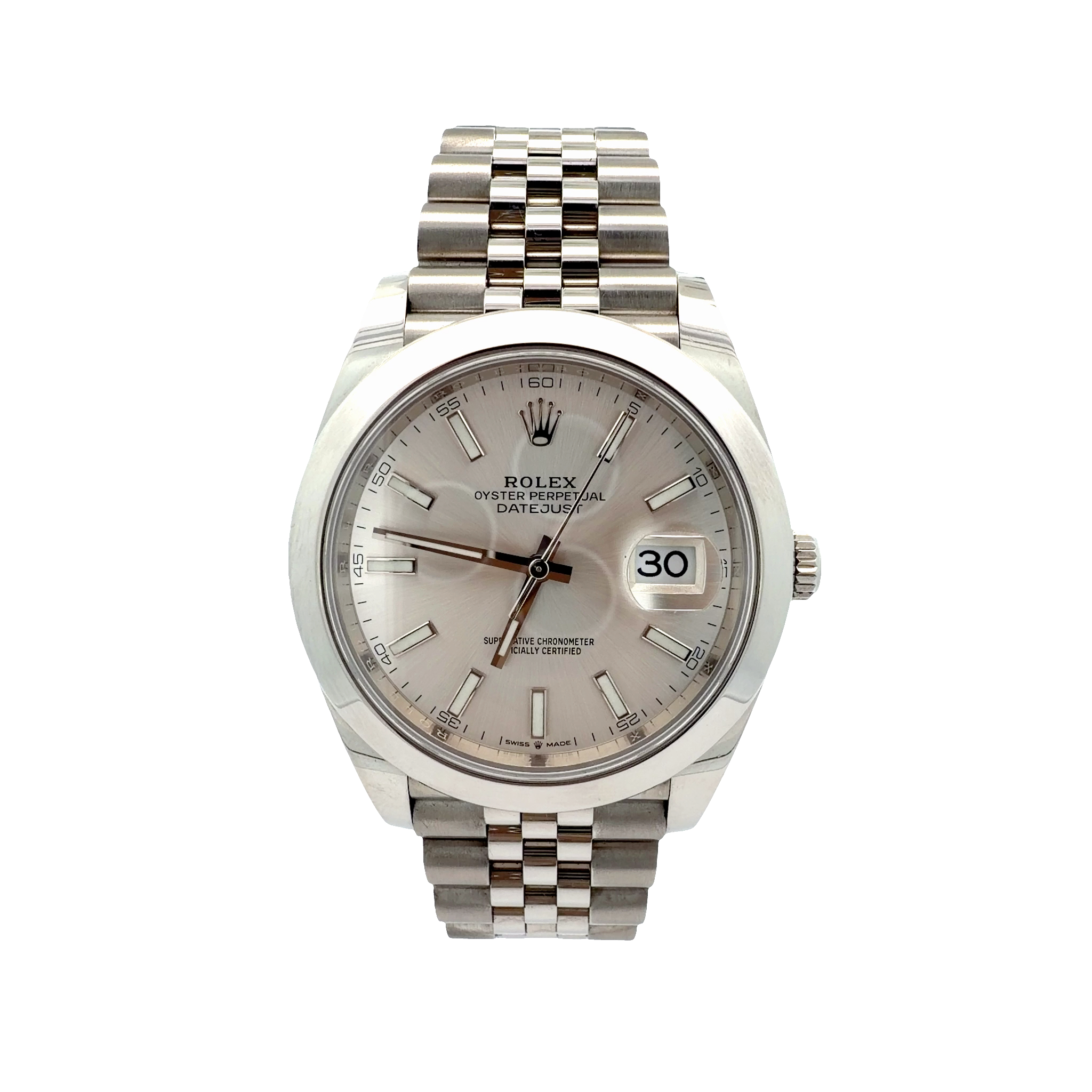 The Rolex Datejust is the perfect fusion of timeless Rolex design and modern watchmaking technology. Introduced in 2016/2017, this model offers a 41mm stainless steel Oyster case crafted from Rolex's highly durable Oystersteel, paired with an elegant Jubilee bracelet.