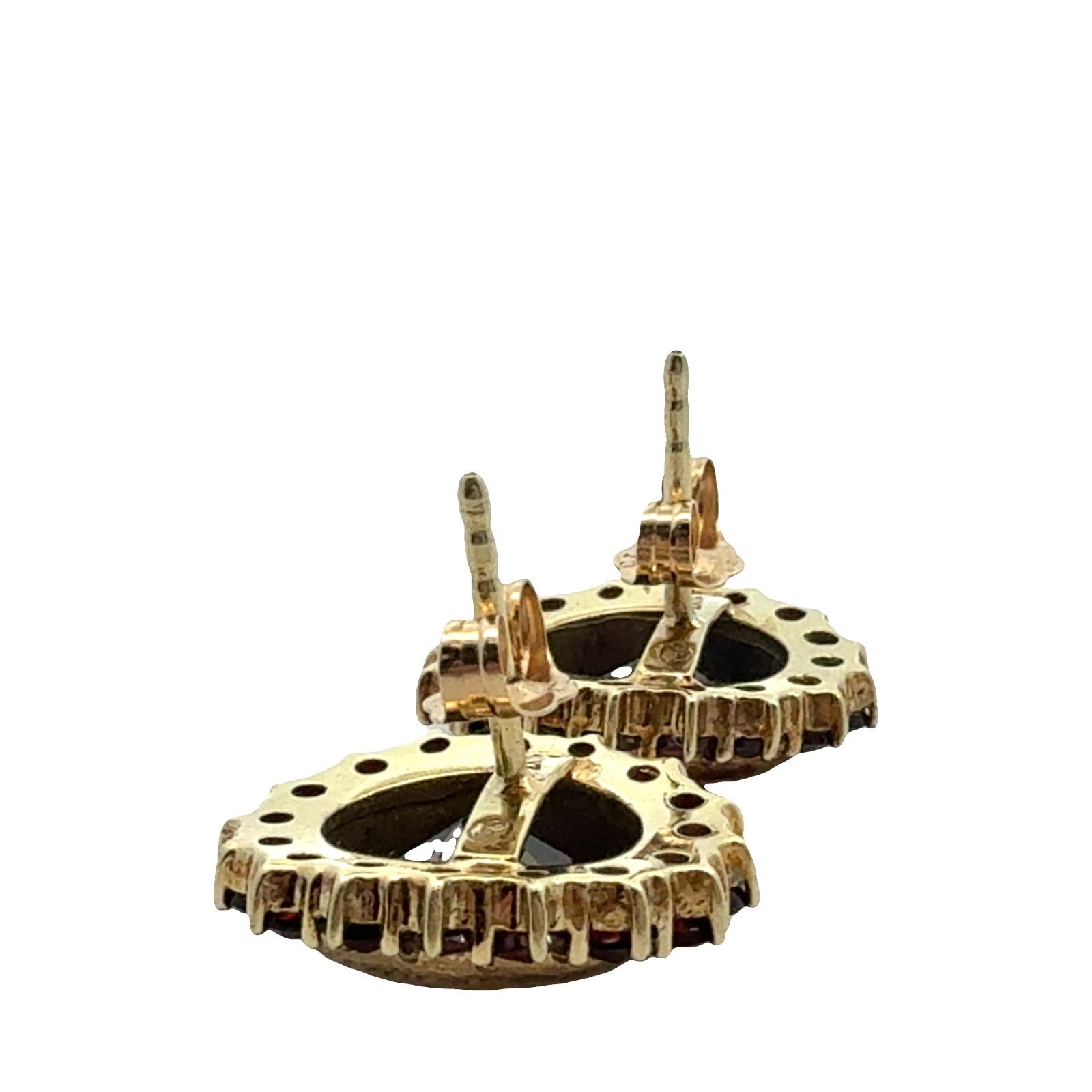 Handcrafted in 14k yellow gold, these vintage earrings showcase stunning oval garnets in a rich crimson hue. These authentic pieces blend timeless design with the warmth of natural gemstones, offering a sophisticated accessory that transitions seamlessly from everyday wear to special occasions. A genuine vintage treasure for those who appreciate fine jewelry with character and history.