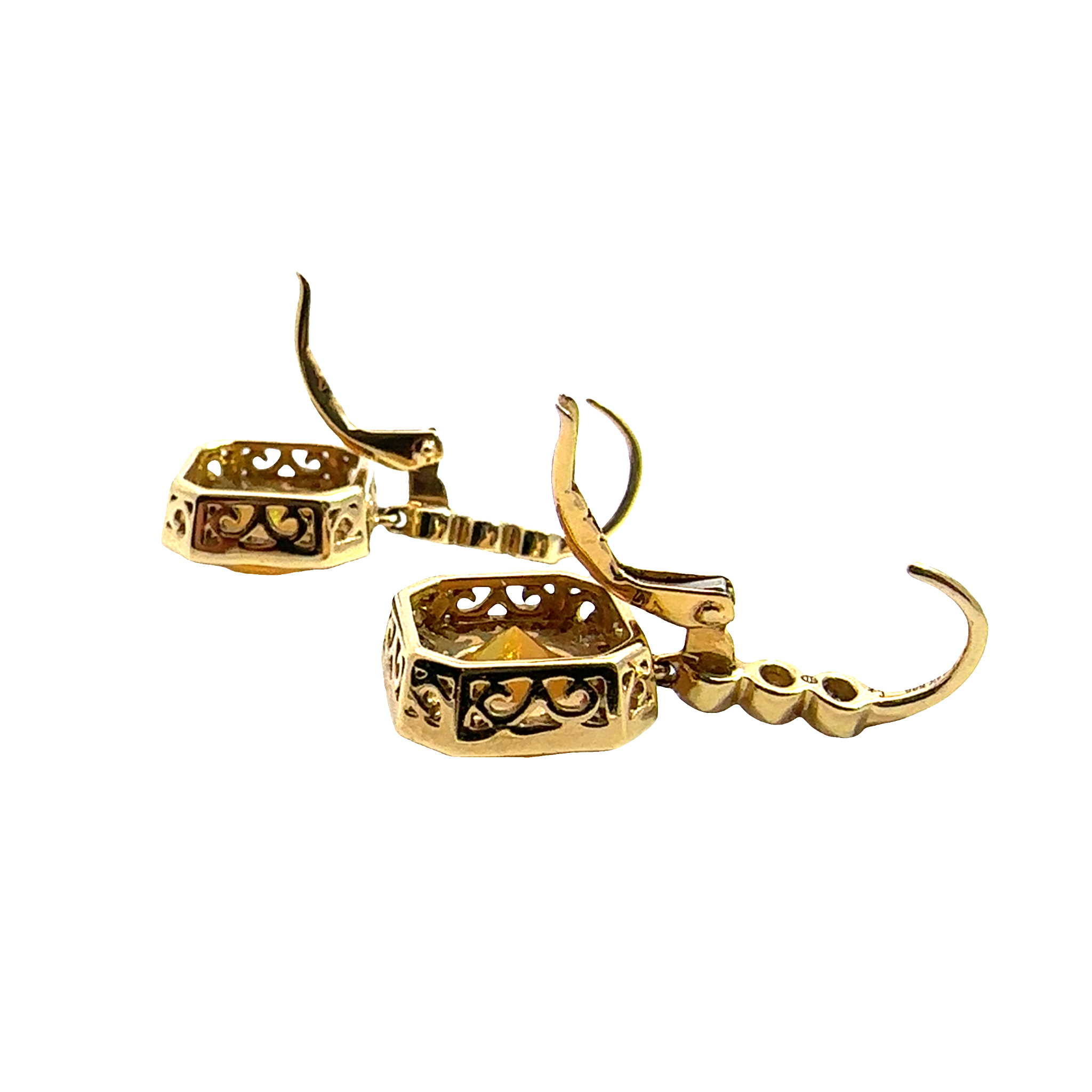 • Vintage 14k Yellow Gold 1.50ctw Fire Opal and 0.65ctw Diamond Earrings