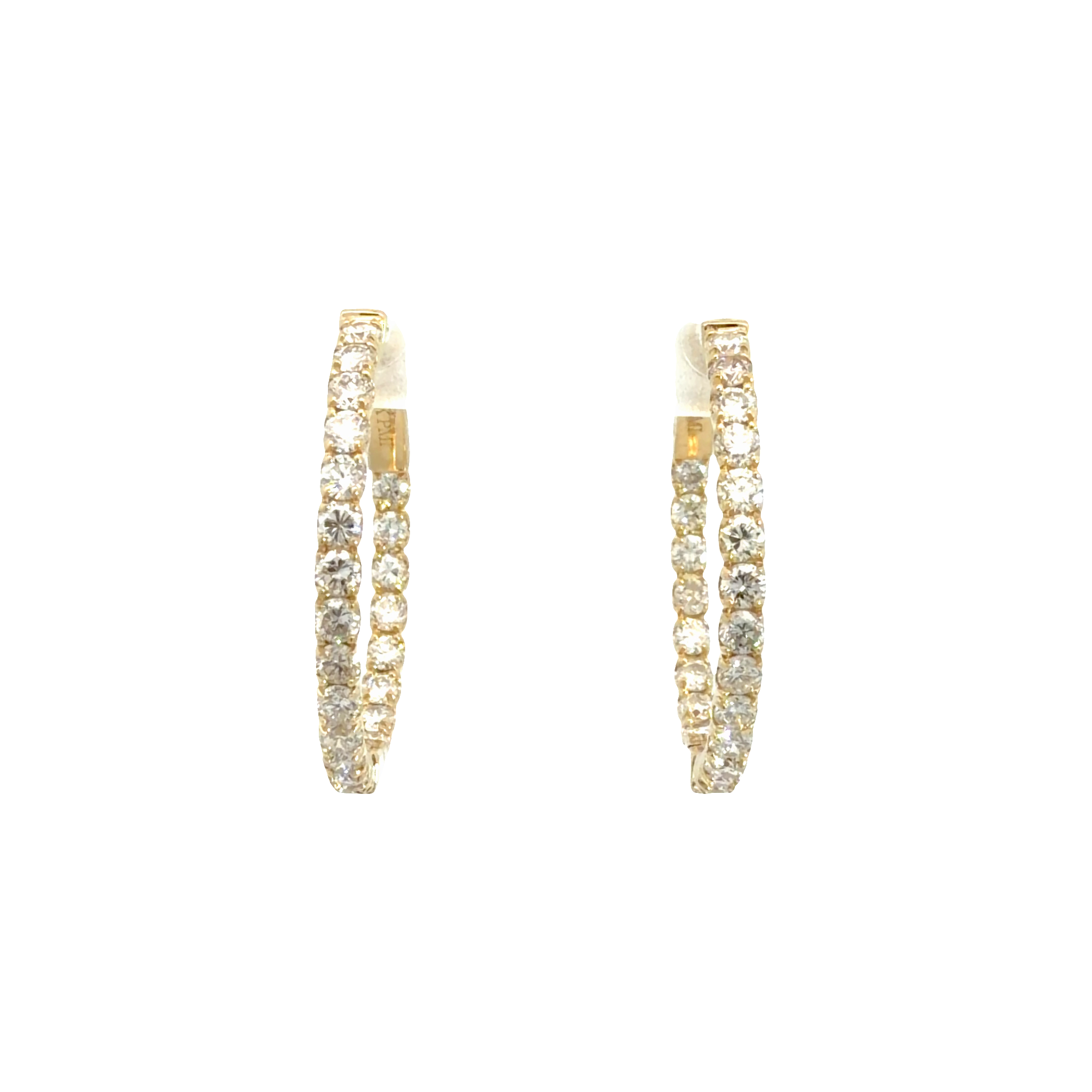 Elevate your everyday elegance with these stunning 14k yellow gold inside out hoop earrings, featuring 1.48 carats of sparkling diamonds. The innovative inside-out design showcases brilliant diamonds along the inner curve, creating a sophisticated look that catches light from every angle.
