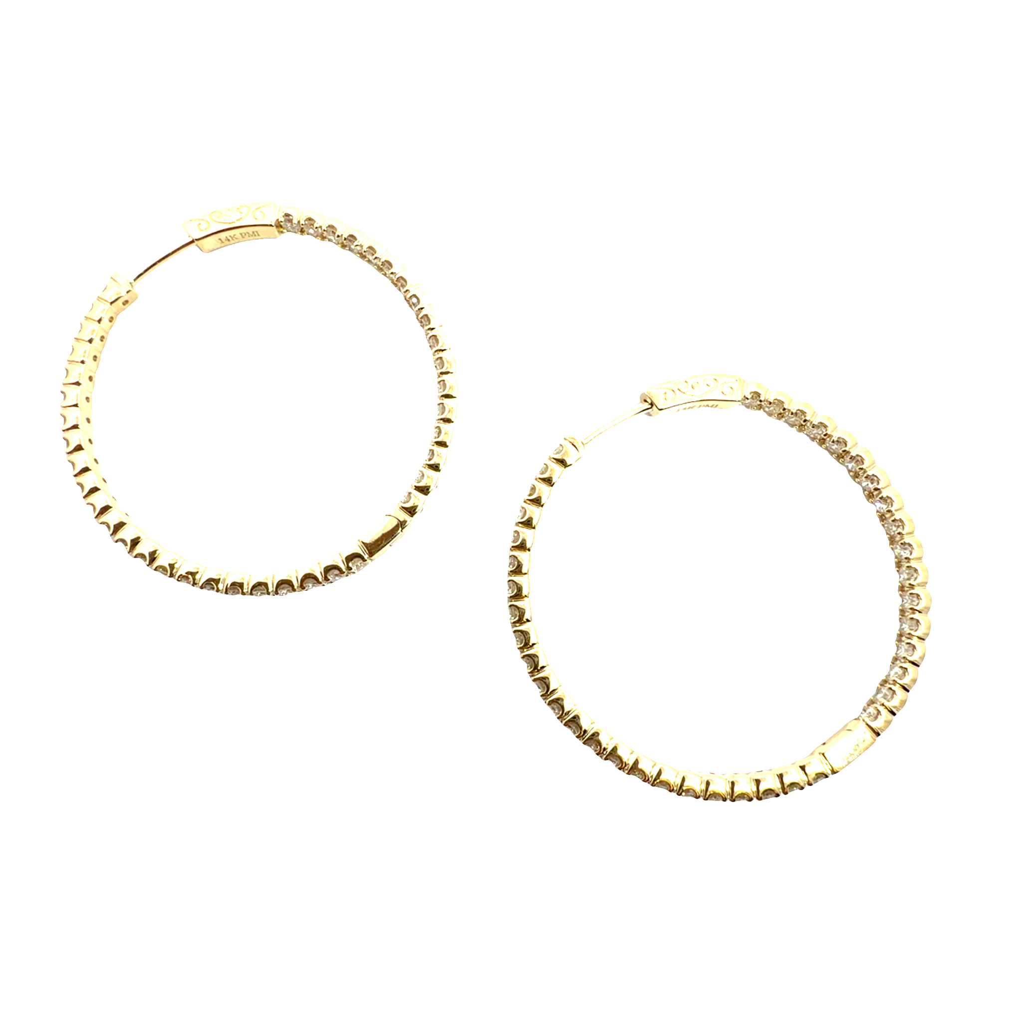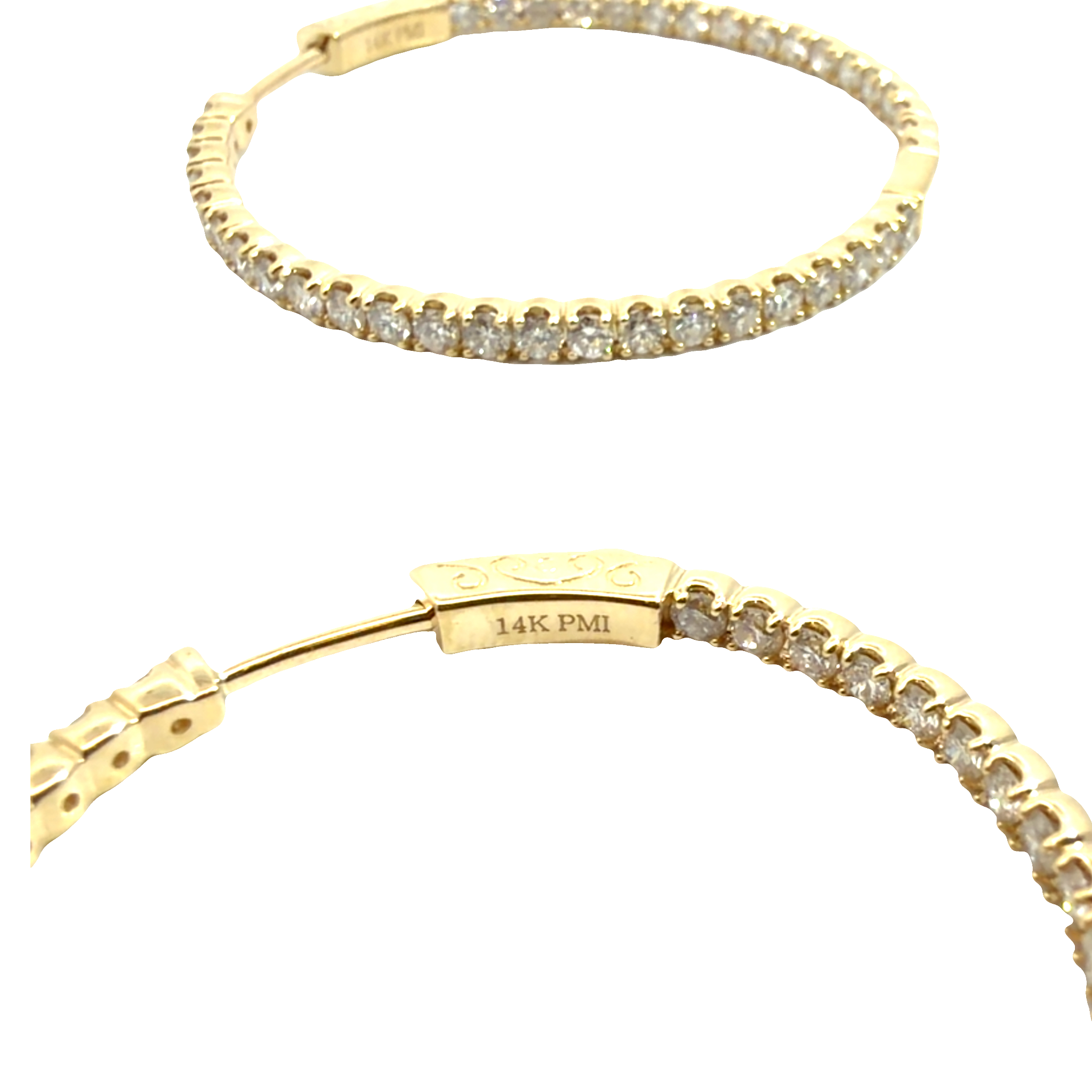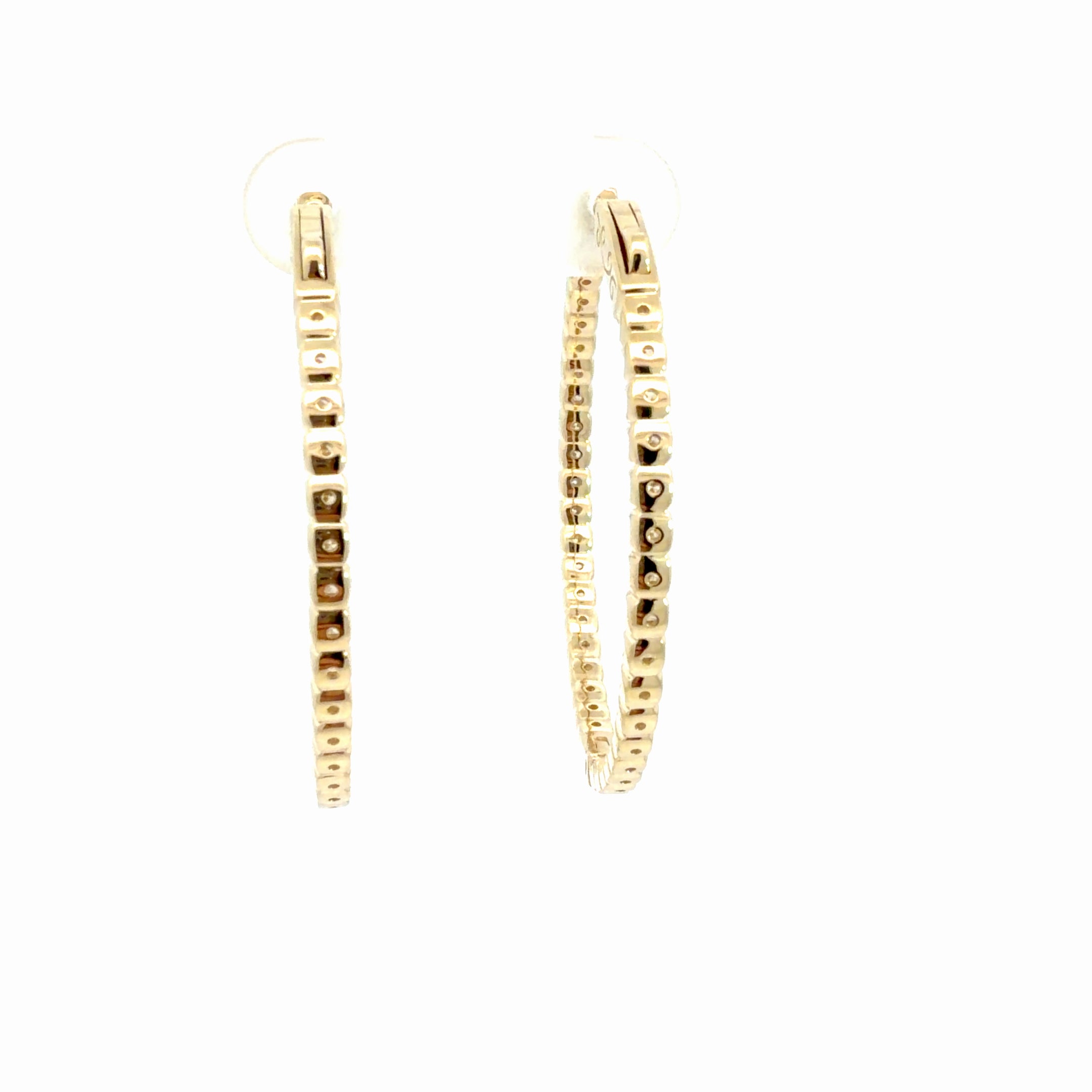 Elevate your everyday elegance with these stunning 14k yellow gold inside out hoop earrings, featuring 2.72 carats of sparkling diamonds. The innovative inside-out design showcases brilliant diamonds along the inner curve, creating a sophisticated look that catches light from every angle.